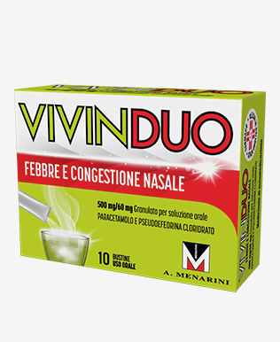 Paracetamolo e pseudoefedrina cloridrato. 10 bustine. È un farmaco, leggere attentamente il foglietto illustrativo.